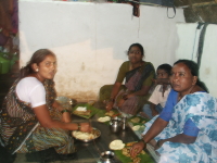 ![]() この日はお祭りのせいか、近所の人が何人も食べに来ていた。最初に食べたのは家長のマヌーと長男のラウール、そして招かれた自分。その次に男衆が入れ替わり、次はお母さん方、そして女の子供たちが最後になる。しっかりと順番が決まっていて、女の子たちにはかわいそうだが、やっぱり長男というのは家の中で最も大事にされるのだな、と感じた。今の日本を始め先進国といわれる国では過去の話だが、ここHAMPIでは稼いで一家を支えていく男が威張っている社会なのだ。夕方の子供たちの遊ぶ姿や、大人たちの井戸端会議の風景、家族の繋がり方を見ても、何か自分の小さかったころの田舎の風景のようで、とても懐かしく感じてしまうのだった。 ![]() マヌーの一家には、前回から続き今回も色々と良くしてもらった。前にシャクーの作った物をいくつか家族の土産に買ったことがあって、マヌーがそれを覚えていて、「今回は俺からプレゼントさせてくれ。好きなものを選んでいいよ」と言われたことがあった。シャクーにも「本当にいいの?」と聞くと、こちらも笑顔だ。奥さんのほうが何故か少し怖いんだよね、美人なんだけど。しかし、インド人にぼられることはあっても、売り物をプレゼントされたことはないから、うれしかったな。 |
