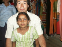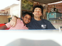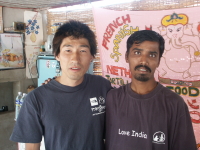 11時には出発したいので、あまりゆっくりしている時間はない。なにしろここでは、気が付くとすぐに時間が経ってしまう。NETRAでいつものようにチャイを飲んで目を覚ます。子供たちは学校なので早めに会っておかなくては。まずはケシャワとさようならをする。次はマヌーのところに顔を出し、チャイをもらって子供たちともしばらく話をし、さようならを言って出ようとすると、「今朝飯を買いに行かせているから、食っていけ」と言われご馳走になる。名前は忘れたけど、野菜の天ぷらみたいな物で、スパイシーなココナッツソースをつけて食べる。これがなかなかうまかった。ラウールとトゥループティを学校に送り出し、バイバイをしたら。すっかりチェックアウトの時間を過ぎてしまった。ムンタパは別にかまわないと言ってくれたが、新しいお客さんが来てしまったので、慌てて荷物を詰める。ムンタパの一家、ゲストハウスの周りの人々、そしてNETRAのヒロらと別れを惜しむ。やっぱりすぐに時間は過ぎてしまった。最後にパンケーキ売りのおっちゃんが部屋まで売りに来てくれたので、昼飯用にバナナパンケーキを仕入れる。 |